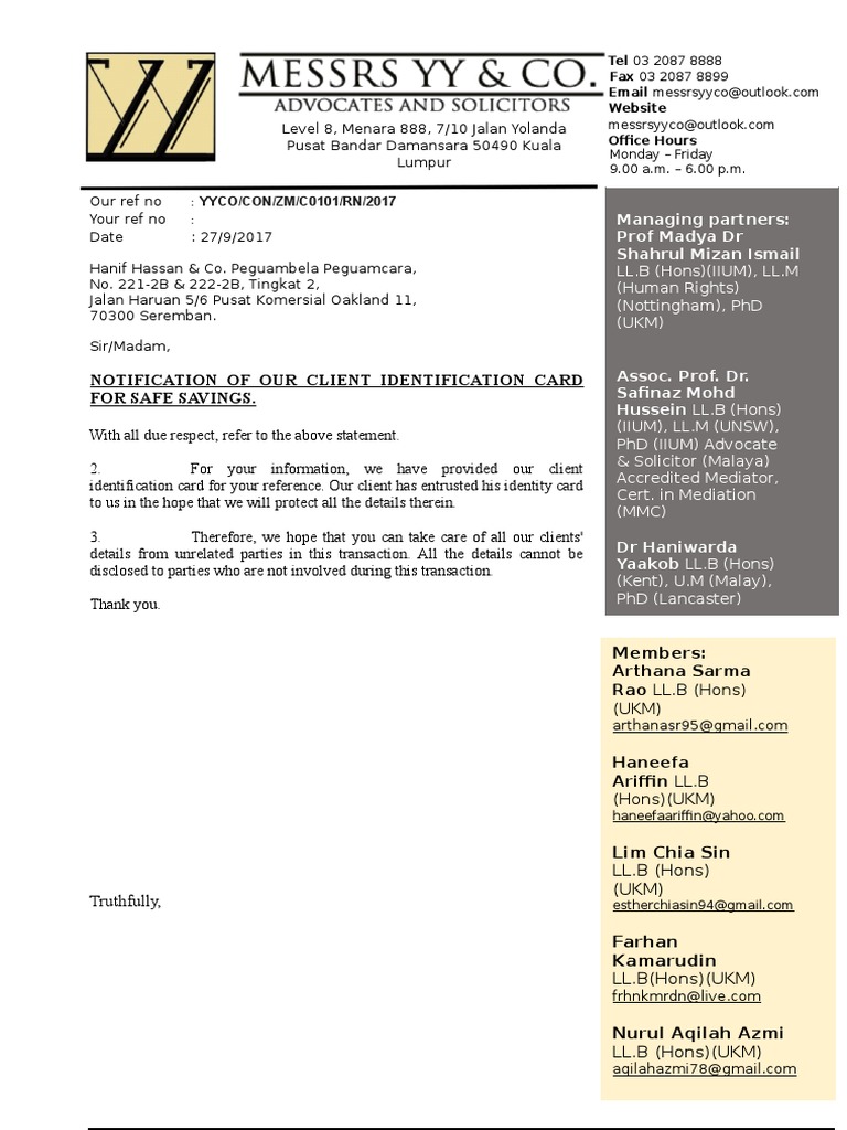 Surat Kepada Hanif Hasan Co Doc