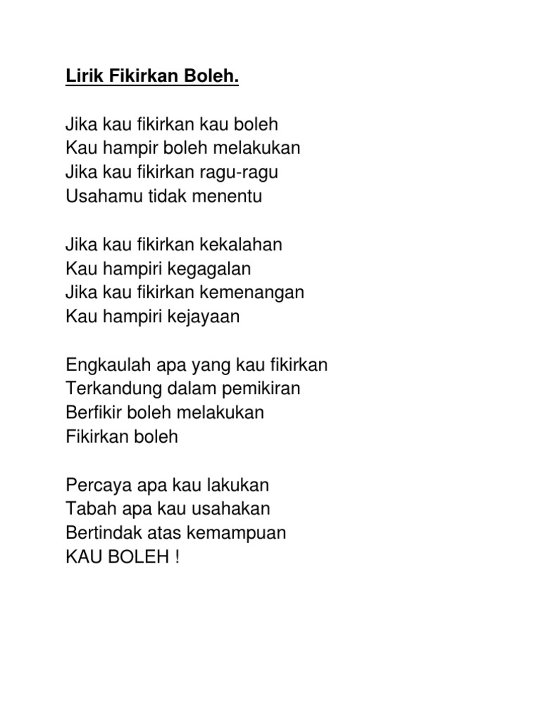 Lirik Lagu Motivasi Fikirkan Boleh Youtube