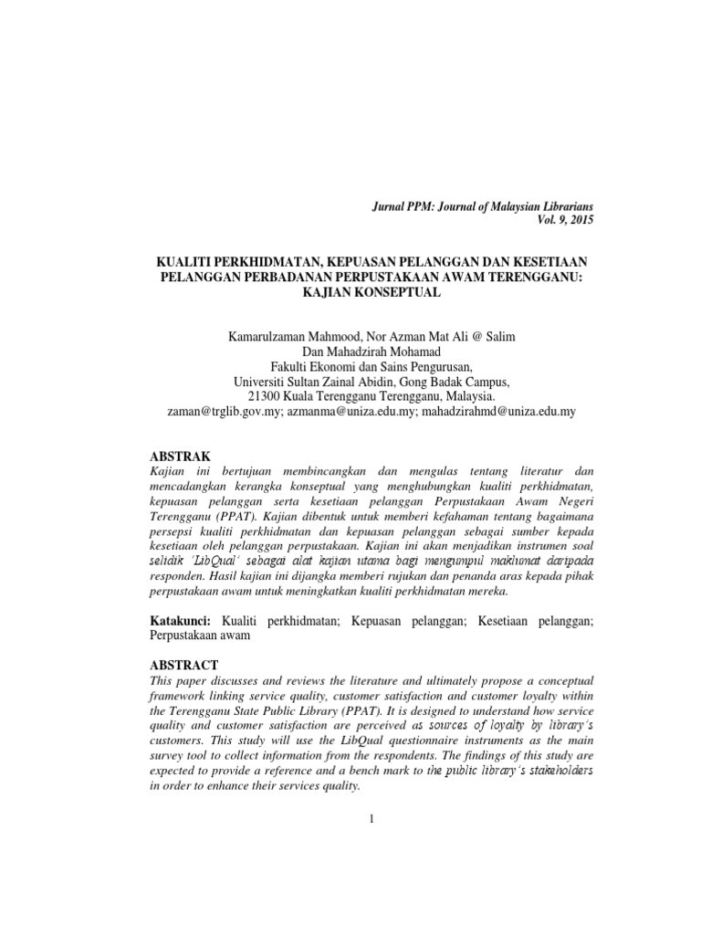 Kajian Kepuasan Pelanggan Terhadap Perkhidmatan Perpustakaan Universiti Awam Di Malaysia Pdf Free Download