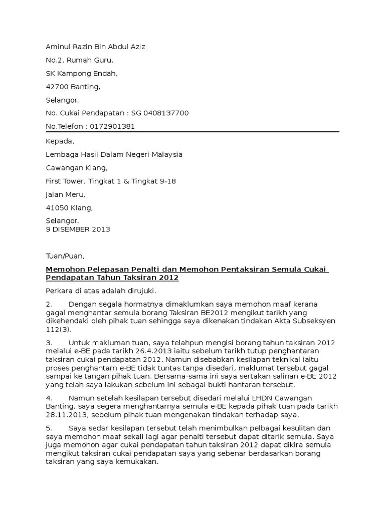 Contoh Surat Rayuan Pengurangan Penalti Lhdn Persoalan V Cute766