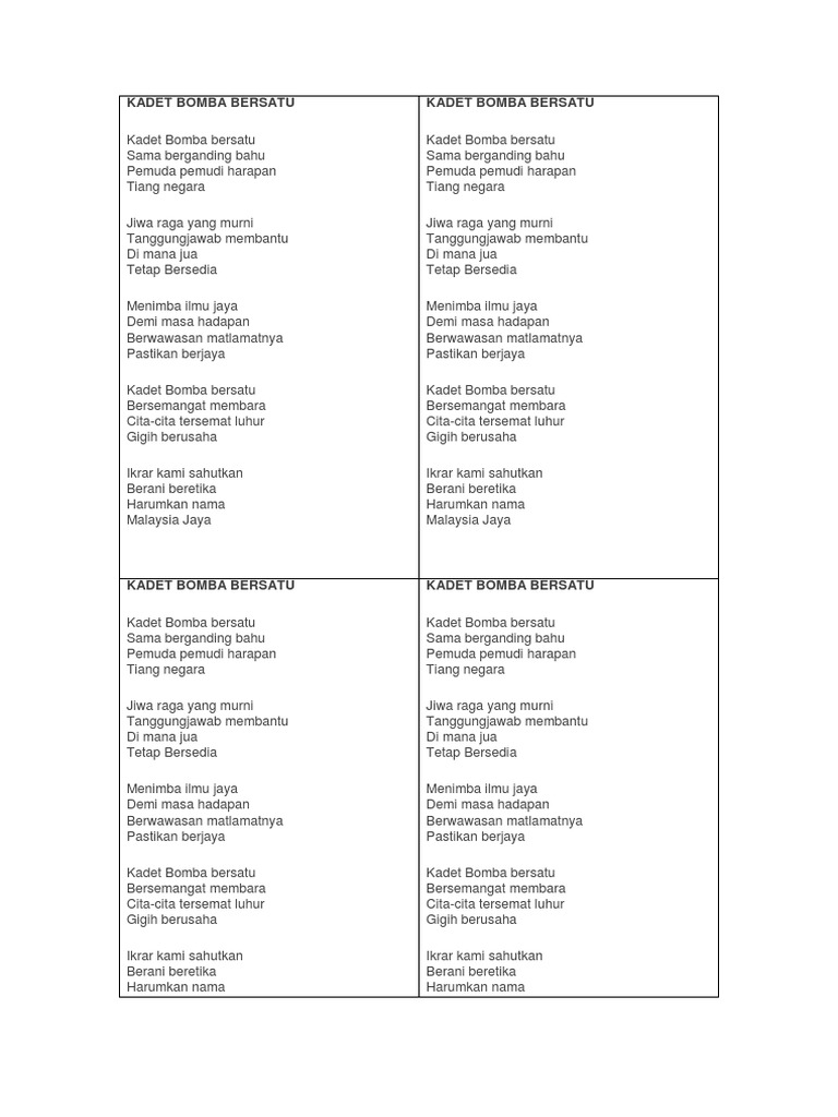 Lirik Kadet Bomba Bersatu Doc Document