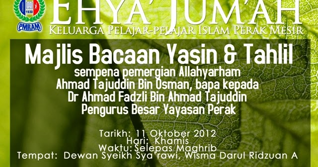 Jemputan Ke Majlis Bacaan Yassin Tahlil Dan Doa Selamat Alumni Uitm Ahmad Faizar S Weblog